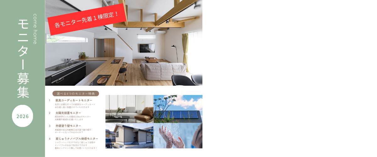マイホームの資産価値は、将来の暮らし方にも影響を及ぼす重大な要素です。 comehomeでは、家を建てることをスタート捉え、大切な資産の価値を末永く維持するために、様々な保証サービスをご用意いたしました。施工実績