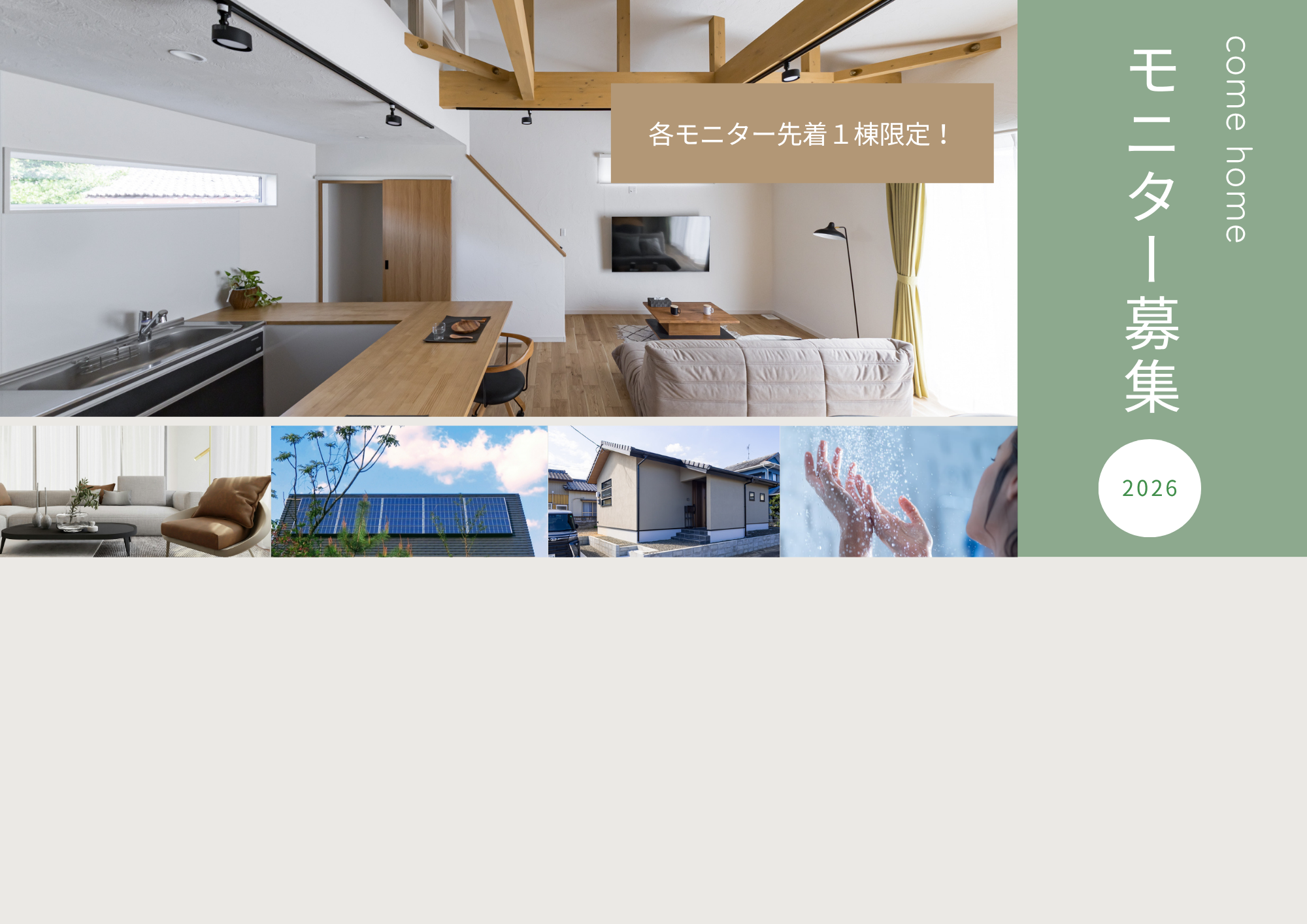 マイホームの資産価値は、将来の暮らし方にも影響を及ぼす重大な要素です。 comehomeでは、家を建てることをスタート捉え、大切な資産の価値を末永く維持するために、様々な保証サービスをご用意いたしました。施工実績